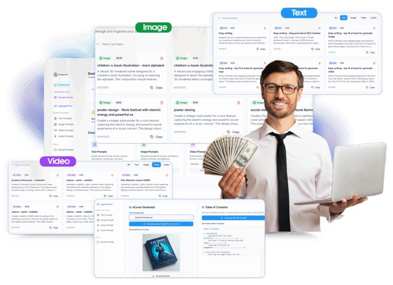 Imagine being able to craft high-quality AI prompts for ChatGPT, Midjourney, or any other AI platform in just minutes—without needing copywriting skills or technical experience…